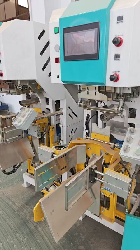 Colocación de las bolsas:Un operador o robot coloca un vacíobolsas de válvulasLa bolsa está sujetada de forma hermética.